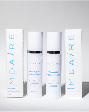 MDAiRE™'s Total Protection SPF Duo combines two advanced daily sunscreens designed to deliver high-performance sun protection with added skincare benefits—one sheer and invisible, the other tinted and perfecting for complete coverage and daily defense.