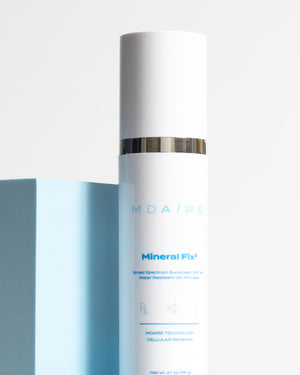 MDAiRE™'s Mineral Fix³ SPF 44 delivers powerful mineral-based sun protection with a universally flattering tint and soft dewy finish. Formulated with hyaluronic acid to deeply hydrate and antioxidant support to help protect against environmental stress and promote overall skin clarity. This water-resistant SPF seamlessly blends into most skin tones to visibly smooth, even, and brighten the complexion. Ideal for melasma-prone or sensitive skin seeking high-performance daily sun protection with a perfected finish