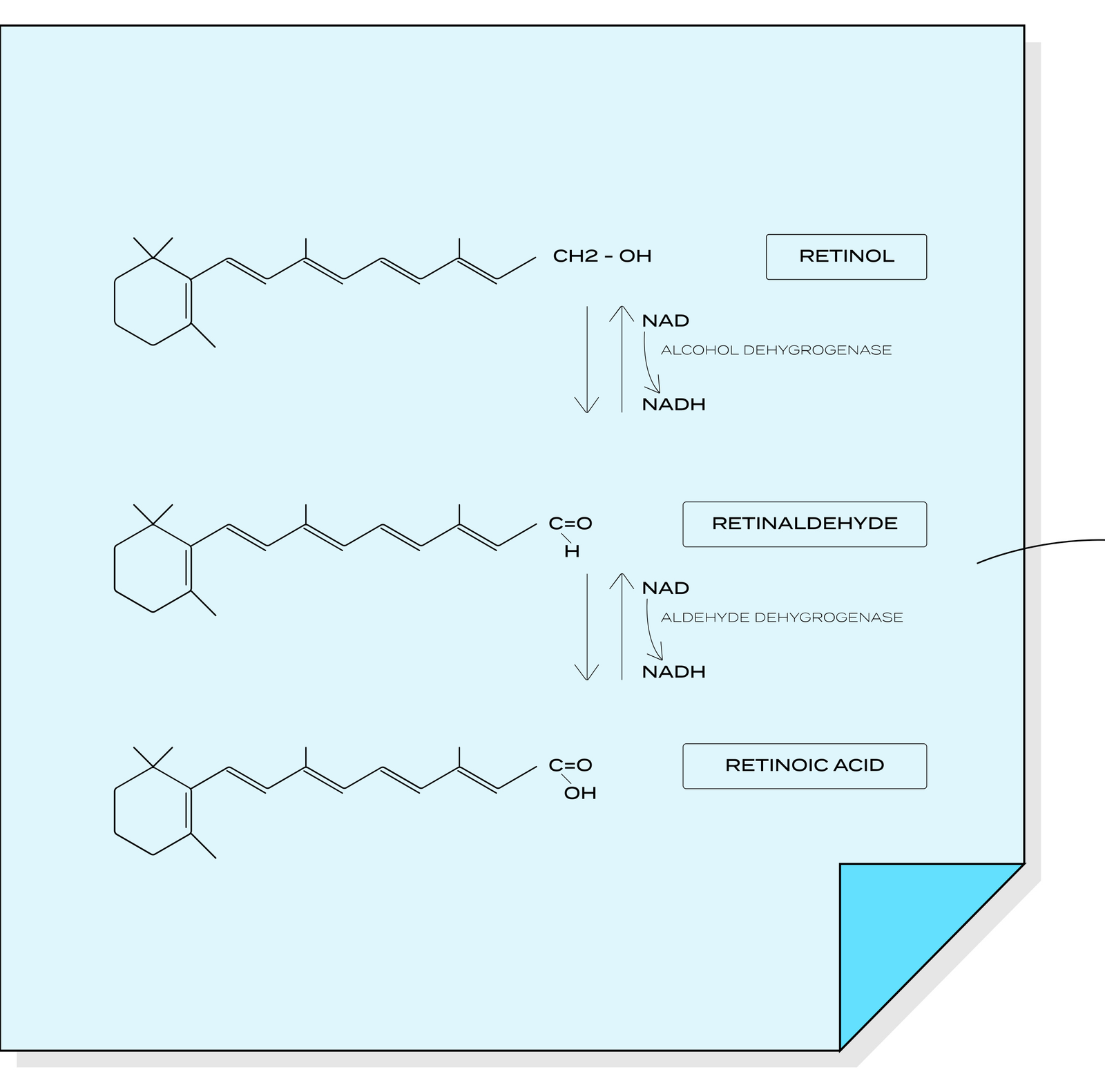 Retinol is a type of retinoid- a class of Vitamin A derivatives used in dermatology. Retinoic acid generally requires a prescription. Retinol and Retinaldehyde are both considered cosmeceutical forms of Vitamin A and are often used in skincare products for their anti-aging effects. Although less potent than prescription strength, both forms get converted to Retinoic Acid in the skin.