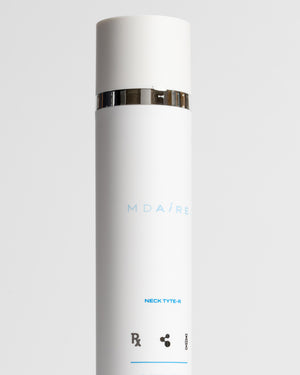 MDAiRE™ Neck Tyte-R complex addresses these issues by using peptides that demonstrate neuromodulator effects, integrating a heavier use of DNA repair enzymes, and remaining focused on barrier restoration and NMF's (natural moisturizing factors). The neuromodulator effects of the peptides in the MDAiRE™ Neck Tyte-R effect the innervation (stimulation) of the neck muscles and overlying skin to give a smooth instead of textured appearance to the delicate crepey skin of the neck and decollete.